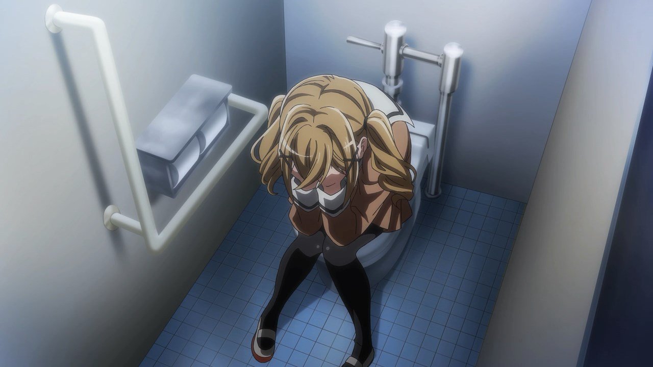 Maybe it’s symbolic or a metaphor for something, like these girls have crossed over into the afterlife, which is in the form of a public bathroom for whatever reason. Maybe it’s supposed to be their own personal hell, and they deserve to be there. Maybe it’s Saki Sano Bashi, with Sano being a play on the English word sanitation? Who is Saki anyway? Is she the main character?