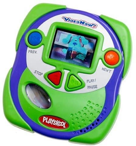 The VideoNow was released in 2003 as a portable video player for children, produced by Hasbro and released under Tiger Electronics. VideoNow discs were coded as Personal Video Discs, or PVDs, which would only function in their respective players. Each PVD had a storage capacity of 450 Mega Bytes and could hold 22-25 minutes of video content.